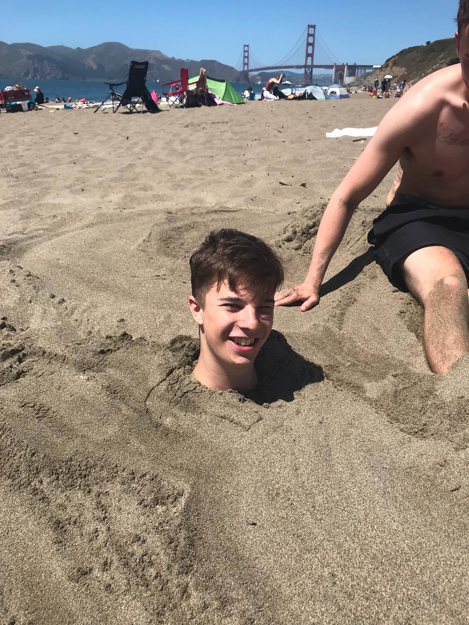 Sean buried in sand