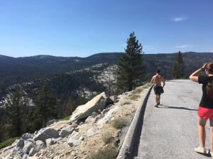 Walking along the highway in Yosemite